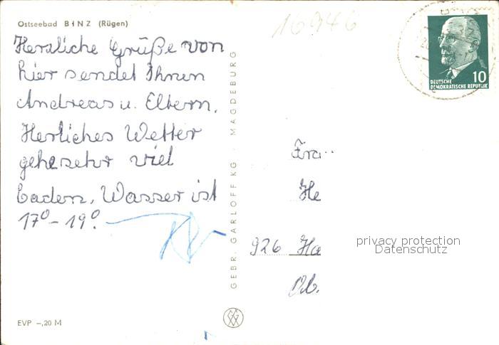 71983358 alte Postkarte Binz Ruegen Ostseebad Strandpartie postalisch gelaufen Erhaltung siehe scans KatCode: 11110013061005