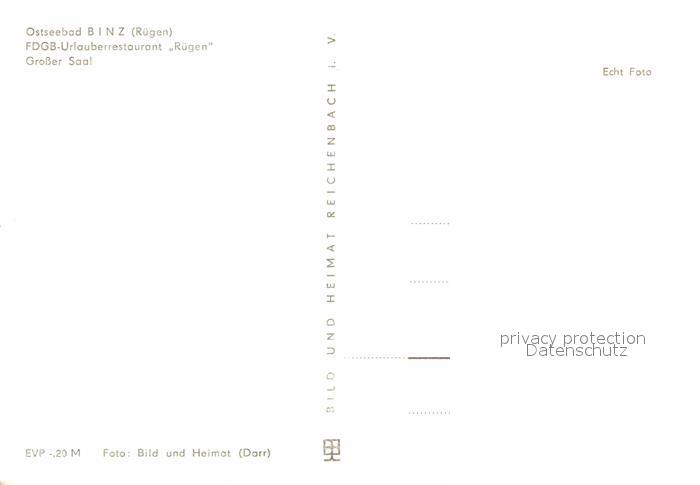 72680974 Binz Ruegen Restaurant Ruegen Grosser Saal postalisch nicht gelaufen Erhaltung siehe scans [LiesaD40] KatCode: 11110013061005