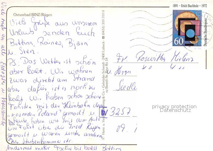 72741889 alte Postkarte Binz Ruegen Segelboote Strandhotels Strand postalisch gelaufen Erhaltung siehe scans [WerneD78] KatCode: 11110013061005