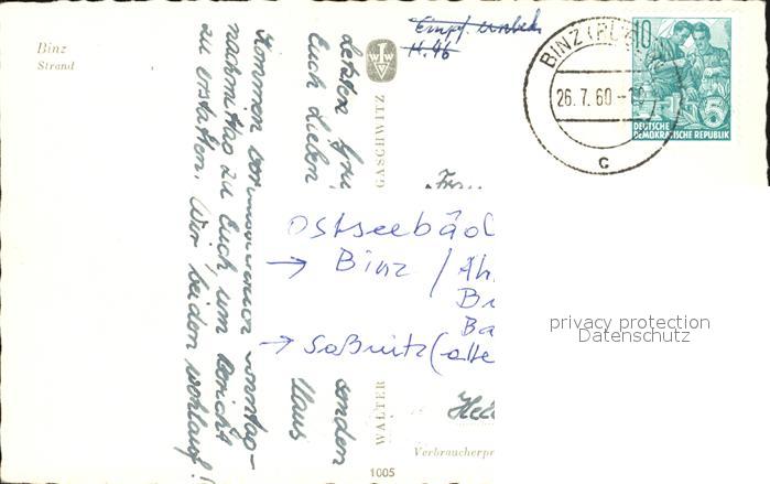 72395600 alte Postkarte Binz Ruegen Strand postalisch gelaufen Erhaltung siehe scans KatCode: 11110013061005