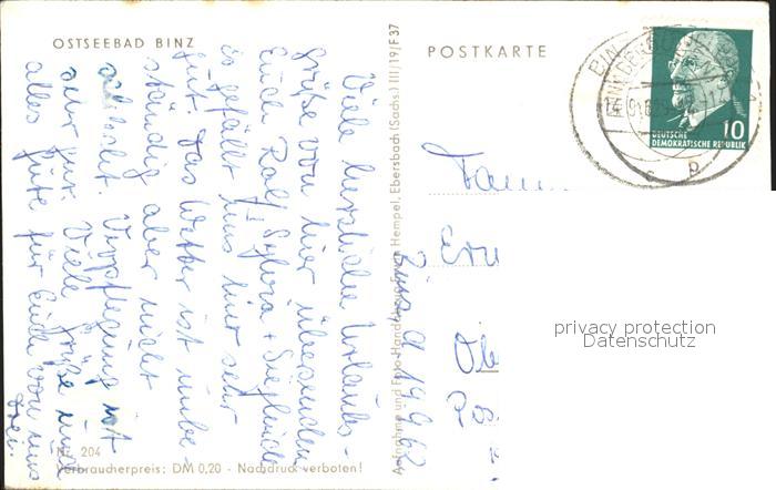 72386023 alte Postkarte Binz Ruegen Strand postalisch gelaufen Erhaltung siehe scans KatCode: 11110013061005