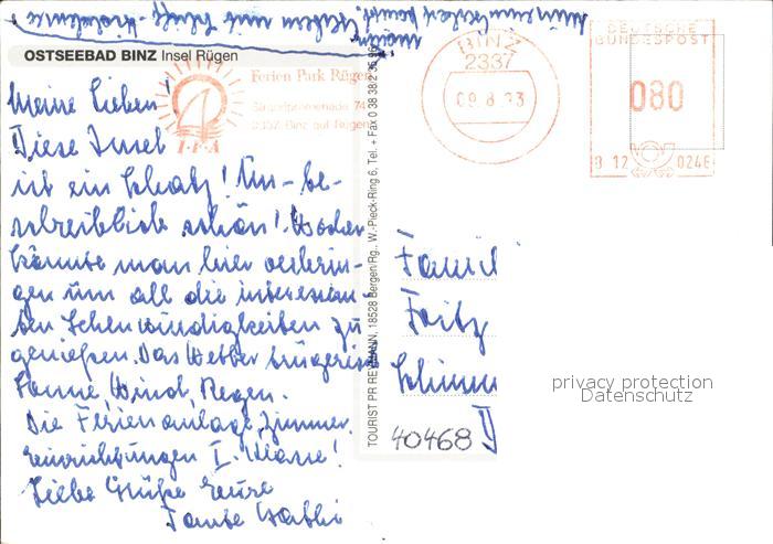 72334102 alte Postkarte Binz Ruegen Strand postalisch gelaufen Erhaltung siehe scans KatCode: 11110013061005