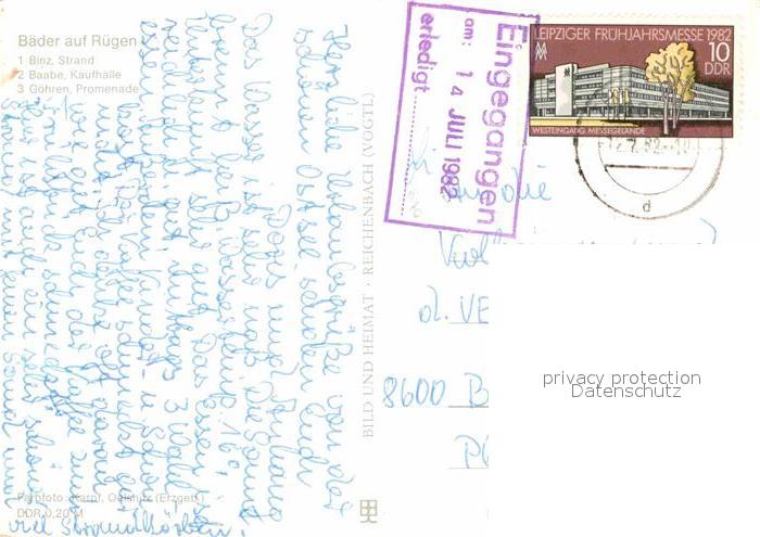 72917815 alte Postkarte Binz Ruegen Strand Baabe Kaufhalle Goehren Promenade postalisch gelaufen Erhaltung siehe scans [LiesaD40] KatCode: 11110013061005