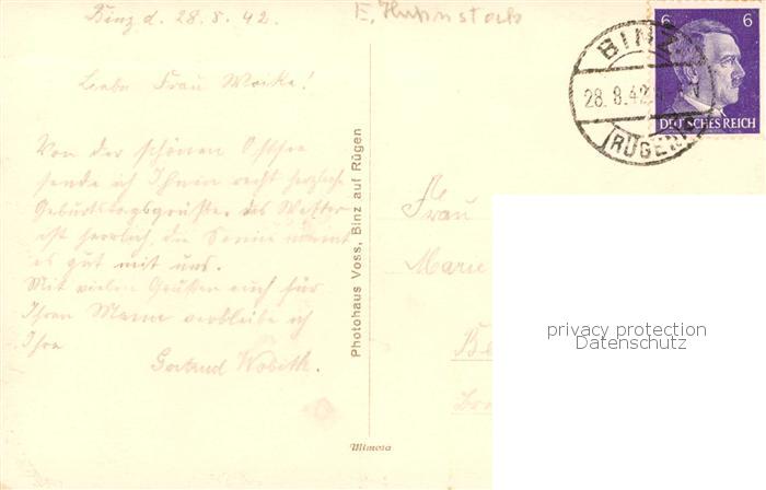 73817824 alte Postkarte Binz Ruegen Strand Hotels postalisch gelaufen Erhaltung siehe scans [FriedD77] KatCode: 11110013061005