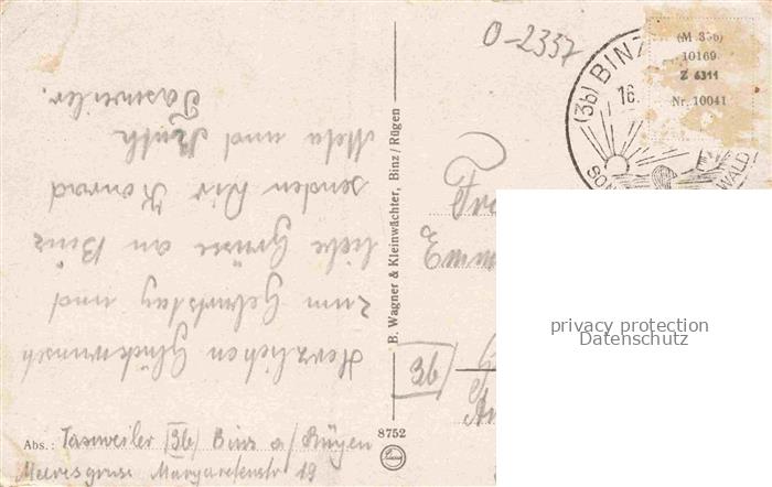 74124439 alte Postkarte BINZ Ruegen Strand Hotels Ansicht vom Meer aus postalisch gelaufen Erhaltung siehe scans [FriedD77] KatCode: 11110013061005