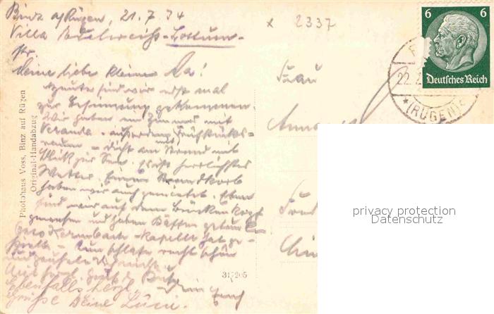 72786866 alte Postkarte Binz Ruegen Strand Hotels Ferienheime Original Handabzug postalisch gelaufen Erhaltung siehe scans [FriedD77] KatCode: 11110013061005