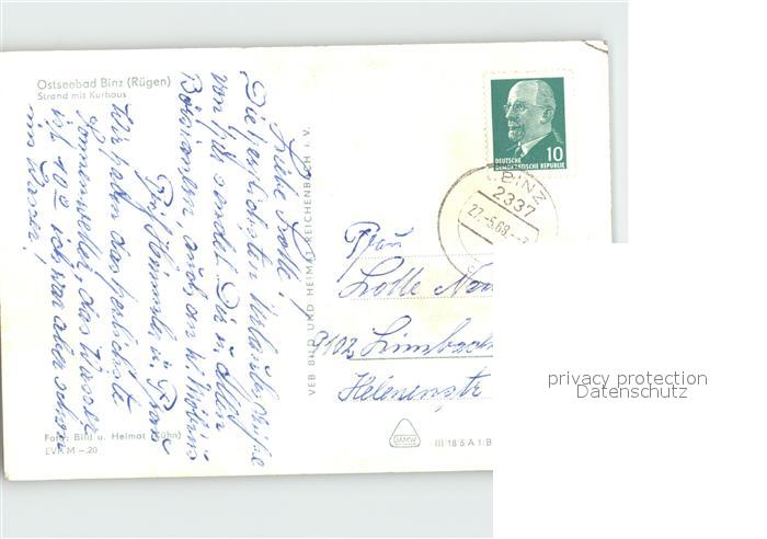 72383665 alte Postkarte Binz Ruegen Strand Kurhaus postalisch gelaufen Erhaltung siehe scans KatCode: 11110013061005
