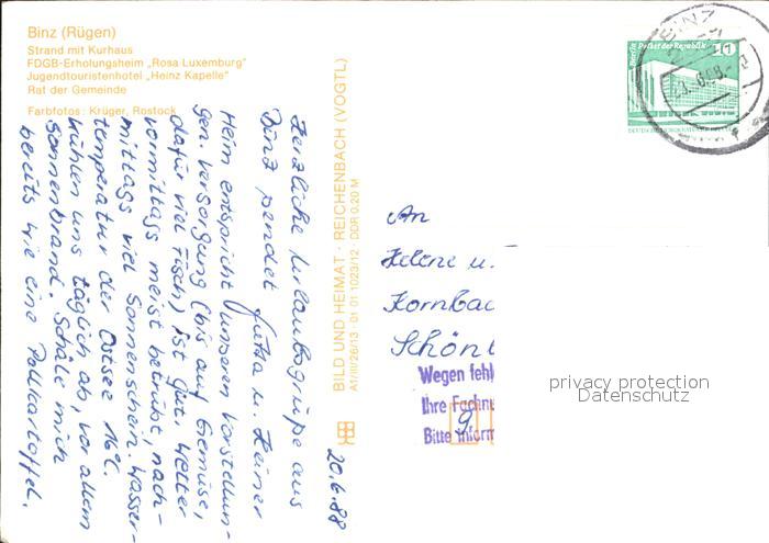 72383334 alte Postkarte Binz Ruegen Strand Kurhaus Erholungsheim Rosa-Luxemburg postalisch gelaufen Erhaltung siehe scans KatCode: 11110013061005