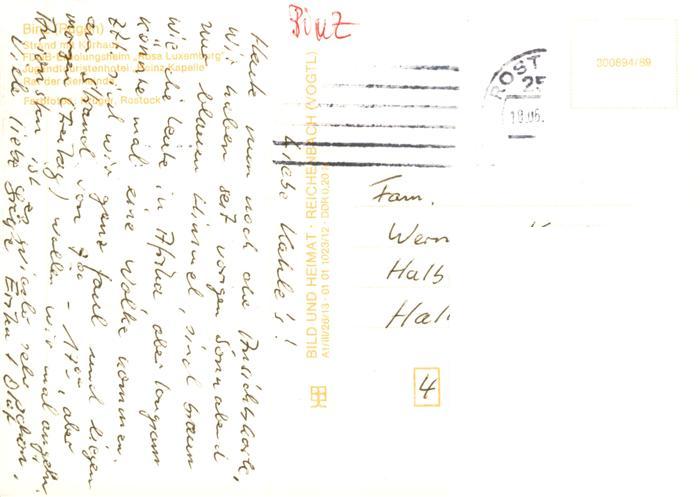 73901458 alte Postkarte Binz Ruegen Strand Kurhaus FDGB-Erholungsheim Rosa Luxemburg Hotel Heinz Kapelle Rat der Gemeinde postalisch gelaufen Erhaltung siehe scans [FriedD77] KatCode: 11110013061005