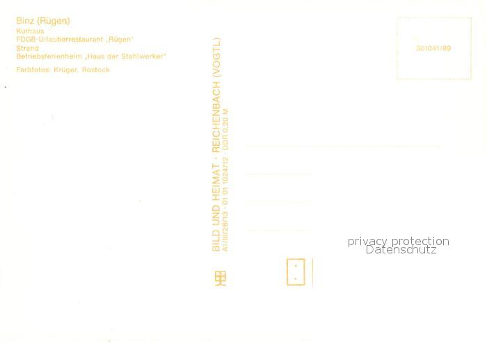 73154276 Binz Ruegen Strand Kurhaus Restaurant Ruegen Haus der Stahlwerker postalisch nicht gelaufen Erhaltung siehe scans [LiesaD40] KatCode: 11110013061005