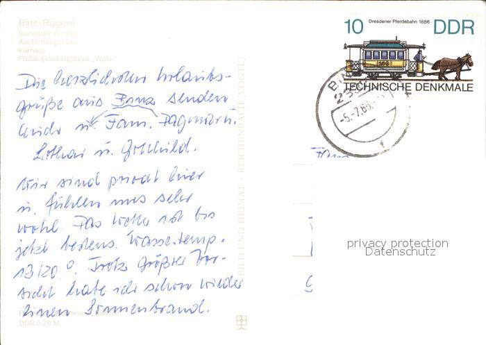 72383114 alte Postkarte Binz Ruegen Strand Wohnbloecke postalisch gelaufen Erhaltung siehe scans KatCode: 11110013061005