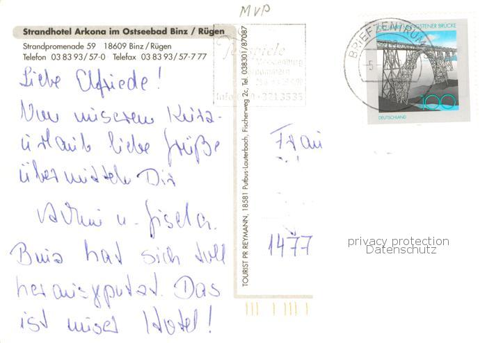73758801 alte Postkarte Binz Ruegen Strandhotel Arkona Strand postalisch gelaufen Erhaltung siehe scans [LiesaD40] KatCode: 11110013061005