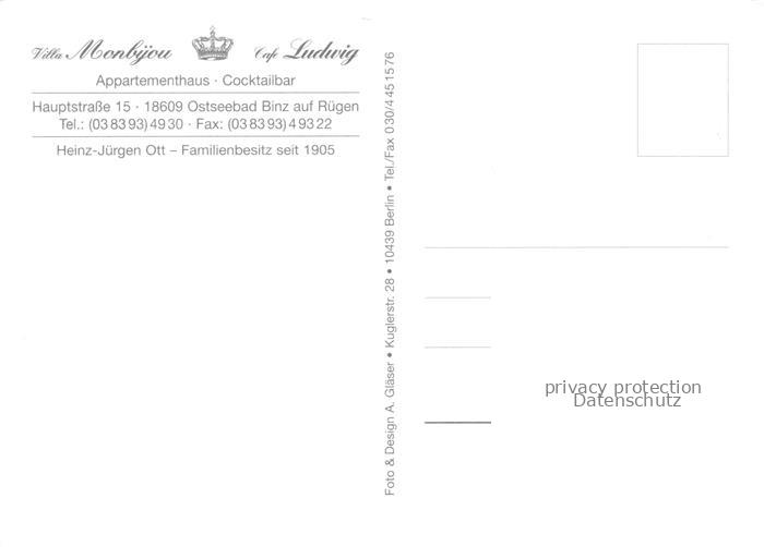 74035954 Binz Ruegen Villa Monbijou Café Ludwig Gastraum Terrasse postalisch nicht gelaufen Erhaltung siehe scans [FriedD77] KatCode: 11110013061005