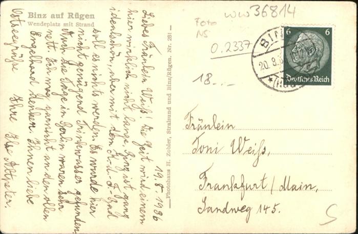 40955081 Binz Ruegen Wendeplatz Strand postalisch gelaufen Alte Ansichtskarte Postkarte alte Postkarte Katcode 11110013061005