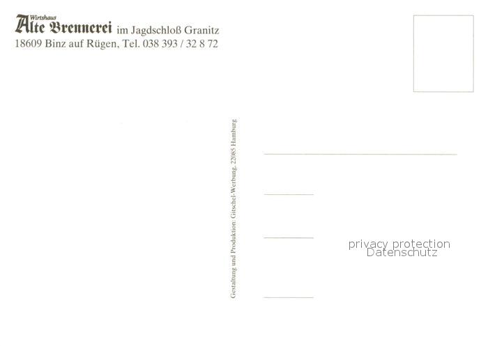 73722911 Binz Ruegen Wirtshaus Alte Brenneri im Jagdschloss Granitz Details postalisch nicht gelaufen Erhaltung siehe scans [WerneD78] KatCode: 11110013061005