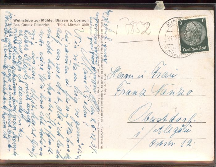 40894193 Binzen Baden Fliegeraufnahme Weinstube Mühle KatCode 11110008336008
