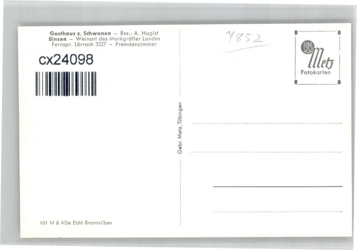 30752830 Binzen Baden Gasthaus Schwanen postalisch nicht gelaufen KatCode: 11110008336008