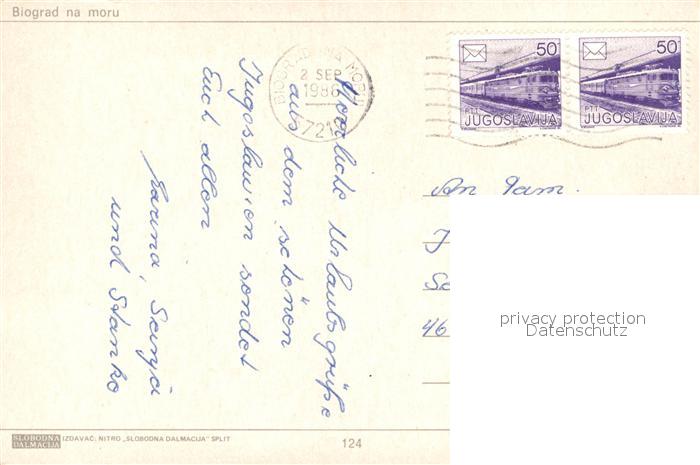 old postcard Biograd Fliegeraufnahme Badestrand postalisch gelaufen Erhaltung siehe scans [FriedD77]