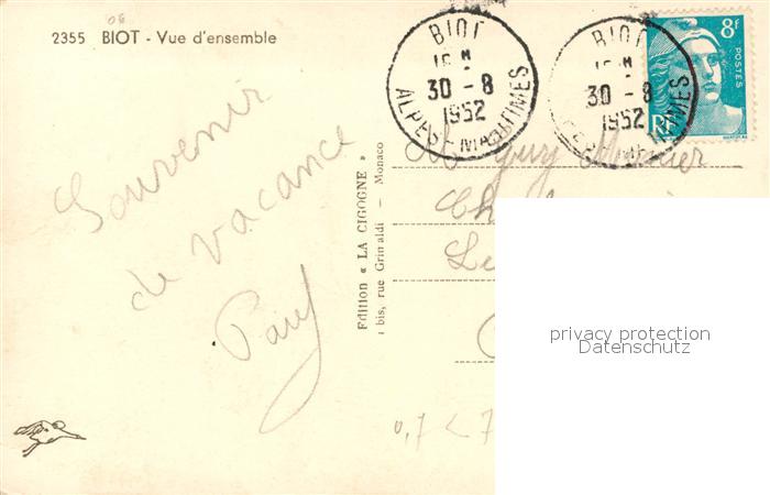 13538807 carte postale Biot Vue d ensemble postalisch gelaufen Erhaltung siehe scans [WerneD78] KatCode: 11170006106018