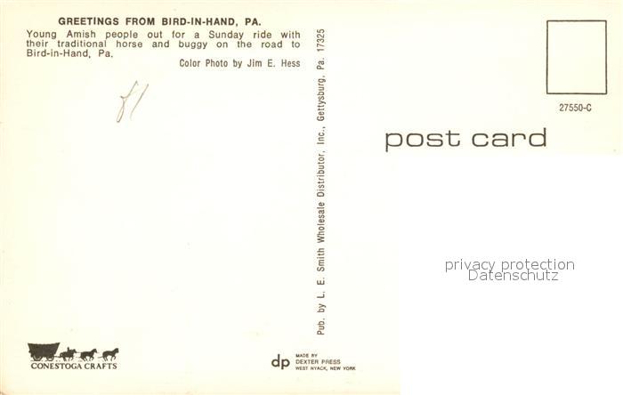73057221 Bird in Hand Sunday ride with their traditional horse and buggy postalisch nicht gelaufen Erhaltung siehe scans [WerneD78] KatCode: 14140410000000