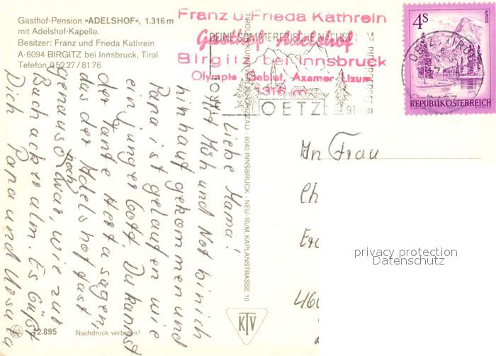 73242186 alte Postkarte Birgitz Tirol Gasthof Pension Adelshof Kapelle postalisch gelaufen Erhaltung siehe scans [KathaD81] KatCode: 11390332070306