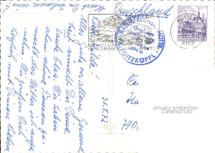 72184824 alte Postkarte Birgitzkoepfl Olympiazentrum Axamer Lizum Naturfreundehaus Solsteinmassiv postalisch gelaufen Erhaltung siehe scans KatCode: 11390332070306