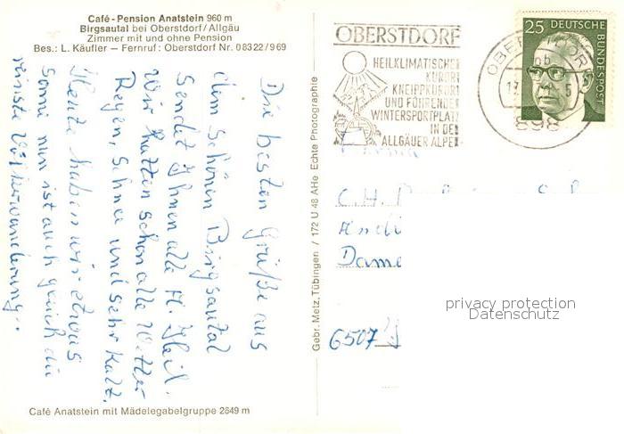 73293160 alte Postkarte Birgsau Bigsautal Cafe Pension Anatstein postalisch gelaufen Erhaltung siehe scans [LiesaD40] KatCode: 11110009780133