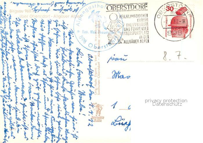 73724009 alte Postkarte Birgsau Gasthaus postalisch gelaufen Erhaltung siehe scans [WerneD78] KatCode: 11110009780133