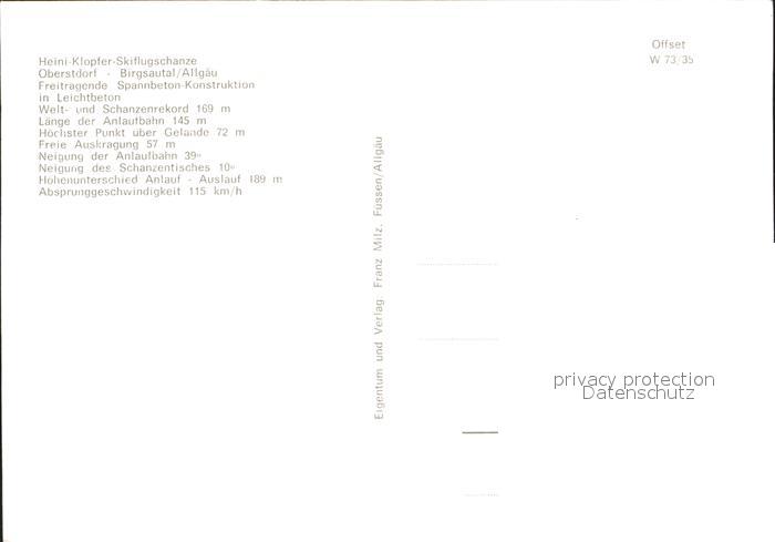 72238709 Birgsau Heini Klopfer Skiflugschanze Wintersportplatz postalisch nicht gelaufen Erhaltung siehe scans KatCode: 11110009780133
