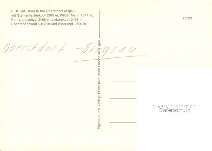 73634950 Birgsau mit Steinschartenkopf Wilder Mann Rothgrundspitze Hochrappenkopf und Biberkopf postalisch nicht gelaufen Erhaltung siehe scans [WerneD78] KatCode: 11110009780133