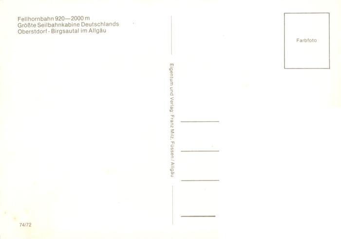 73971183 Birgsau Oberstdorf Fellhornbahn Allgaeuer Alpen postalisch nicht gelaufen Erhaltung siehe scans [FriedD77] KatCode: 11110009780133