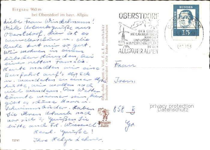 72443806 alte Postkarte Birgsau postalisch gelaufen Erhaltung siehe scans KatCode: 11110009780133