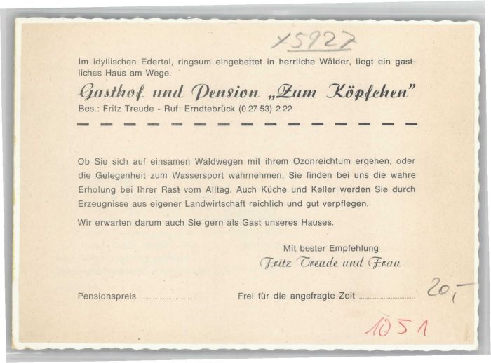 40675748 Birkelbach Wittgenstein Gasthof Pension zum Köpfchen KatCode 11110005970012