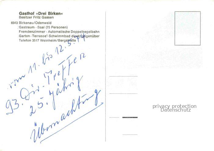 74048081 Birkenau Odenwald Gasthof Drei Birken postalisch nicht gelaufen Erhaltung siehe scans [FriedD77] KatCode: 11110006431004