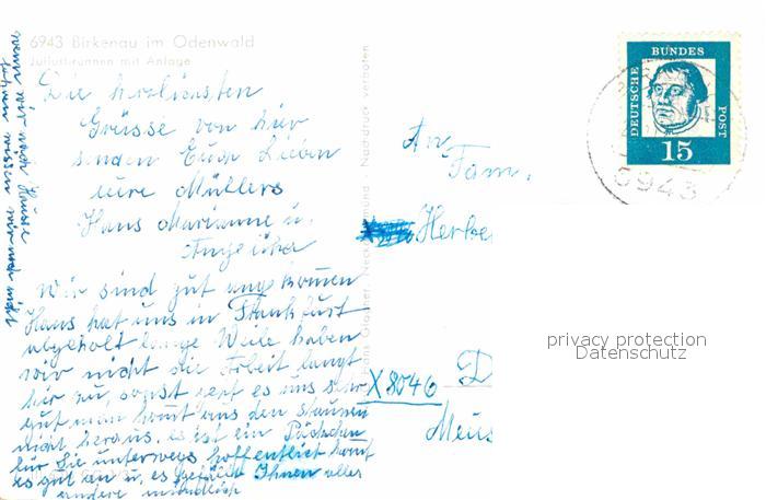 72632189 alte Postkarte Birkenau Odenwald Juliusbrunnen mit Anlage postalisch gelaufen Erhaltung siehe scans [FriedD77] KatCode: 11110006431004
