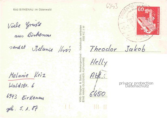 74048205 alte Postkarte Birkenau Odenwald Ortsmotive Fachwerkhaeuser Parkanlagen Freibad postalisch gelaufen Erhaltung siehe scans [FriedD77] KatCode: 11110006431004
