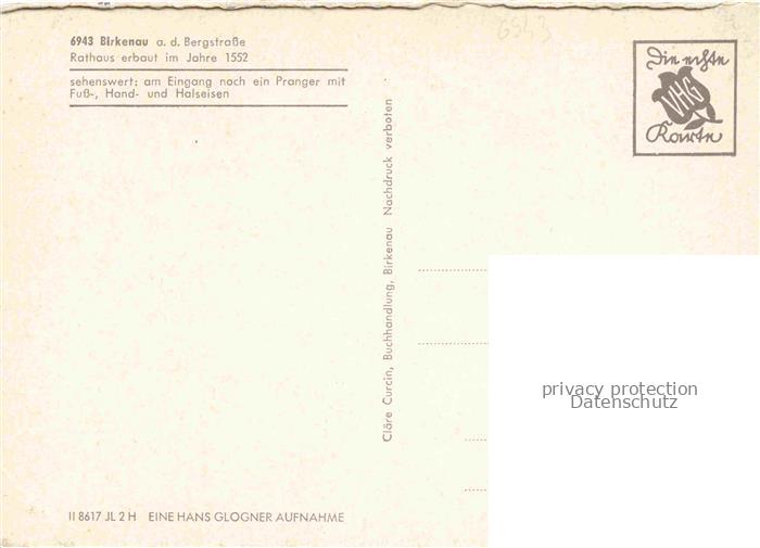 74048076 Birkenau Odenwald Rathaus 16. Jhdt. Fachwerkhaus postalisch nicht gelaufen Erhaltung siehe scans [FriedD77] KatCode: 11110006431004