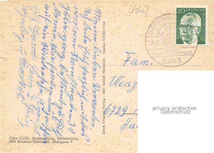 74048036 alte Postkarte Birkenau Odenwald Schloss Fachwerkhaus Bruecke Brunnen Freibad postalisch gelaufen Erhaltung siehe scans [FriedD77] KatCode: 11110006431004