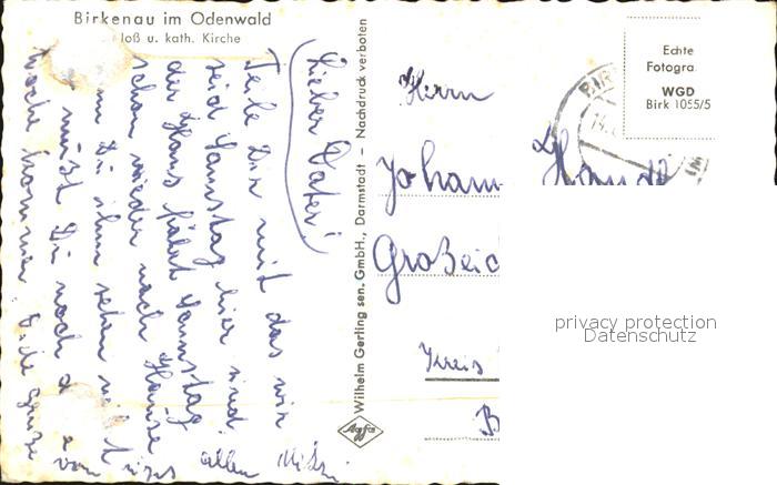 72482856 alte Postkarte Birkenau Odenwald Schloss katholische Kirche postalisch gelaufen Erhaltung siehe scans KatCode: 11110006431004
