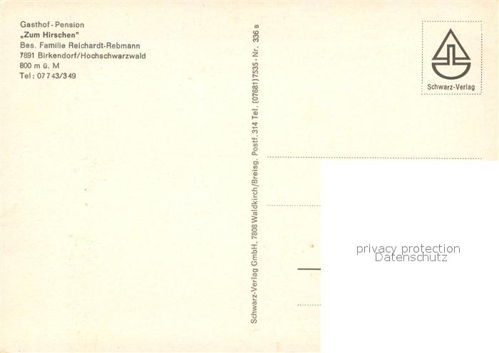 73646497 Birkendorf Gasthof Pension Zum Hirschen im Schwarzwald Brunnen postalisch nicht gelaufen Erhaltung siehe scans [FriedD77] KatCode: 11110008337128