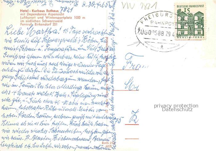 74104609 alte Postkarte Birkendorf uehlingen-Birkendorf BW Hotel Kurhaus Rothaus postalisch gelaufen Bahnpost Erhaltung siehe scans [WerneD78] KatCode: 11110008337128