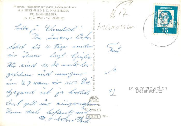 73854467 alte Postkarte Birkenfeld Hassberge Gasthof am Loewentor postalisch gelaufen Erhaltung siehe scans [WerneD78] KatCode: 11110009674171