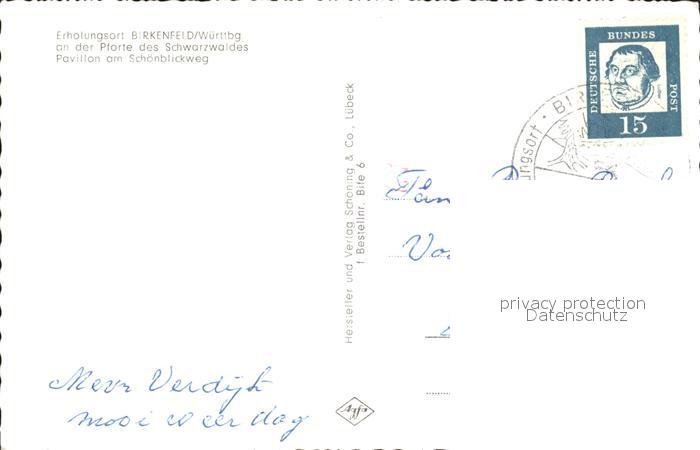 72165514 alte Postkarte Birkenfeld Wuerttemberg Pavillon am Schoenblickweg postalisch gelaufen Erhaltung siehe scans KatCode: 11110008236004