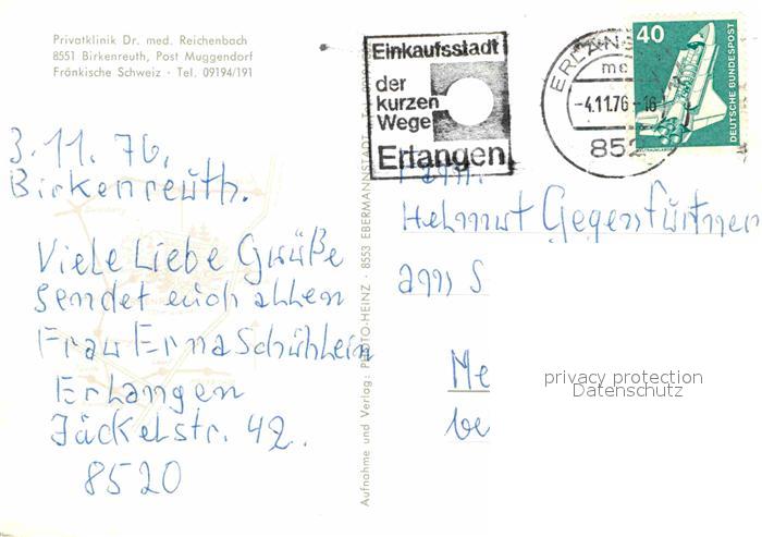 72724025 alte Postkarte Birkenreuth Privatklinik Dr. med Reichenbach postalisch gelaufen Erhaltung siehe scans [LiesaD40] KatCode: 11110009474176