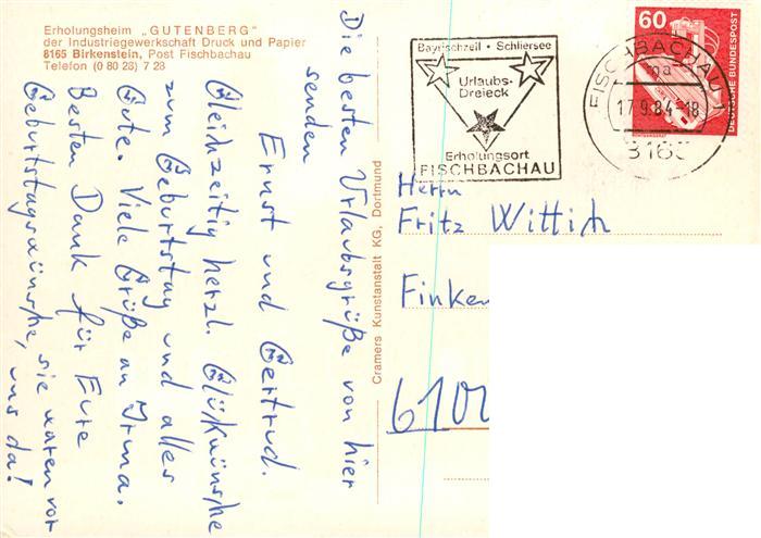 73895631 alte Postkarte Birkenstein Fischbachau Bayern Erholungsheim Gutenberg postalisch gelaufen Erhaltung siehe scans [FriedD77] KatCode: 11110009182114