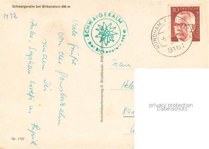 73712161 alte Postkarte Birkenstein Schwaigeralm Terrasse Panorama postalisch gelaufen Erhaltung siehe scans [WerneD78] KatCode: 11110009182114