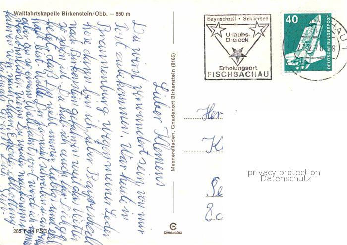 72754054 alte Postkarte Birkenstein Wallfahrtskapelle postalisch gelaufen Erhaltung siehe scans [LiesaD40] KatCode: 11110009182114