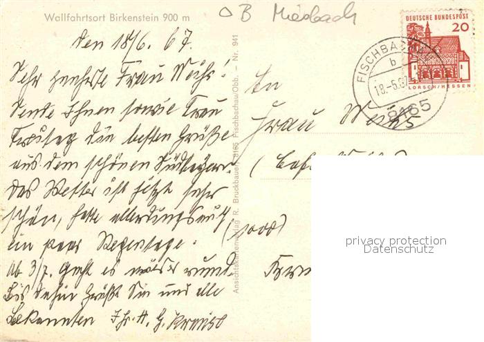 72917154 alte Postkarte Birkenstein postalisch gelaufen Erhaltung siehe scans [NatalD47] KatCode: 11110009182114