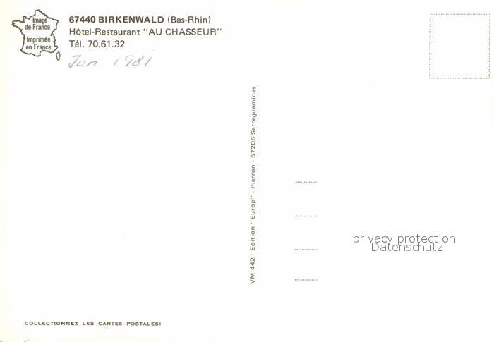 12785161 Birkenwald Hotel Restaurant Au Chasseur postalisch nicht gelaufen Erhaltung siehe scans [FriedD77] KatCode: 11170067467041