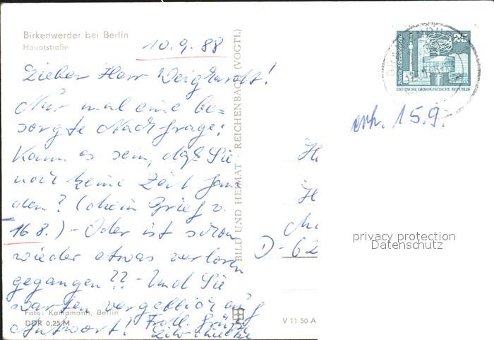 71978270 alte Postkarte Birkenwerder Hauptstrasse Kirchturm postalisch gelaufen Erhaltung siehe scans KatCode: 11110012065036